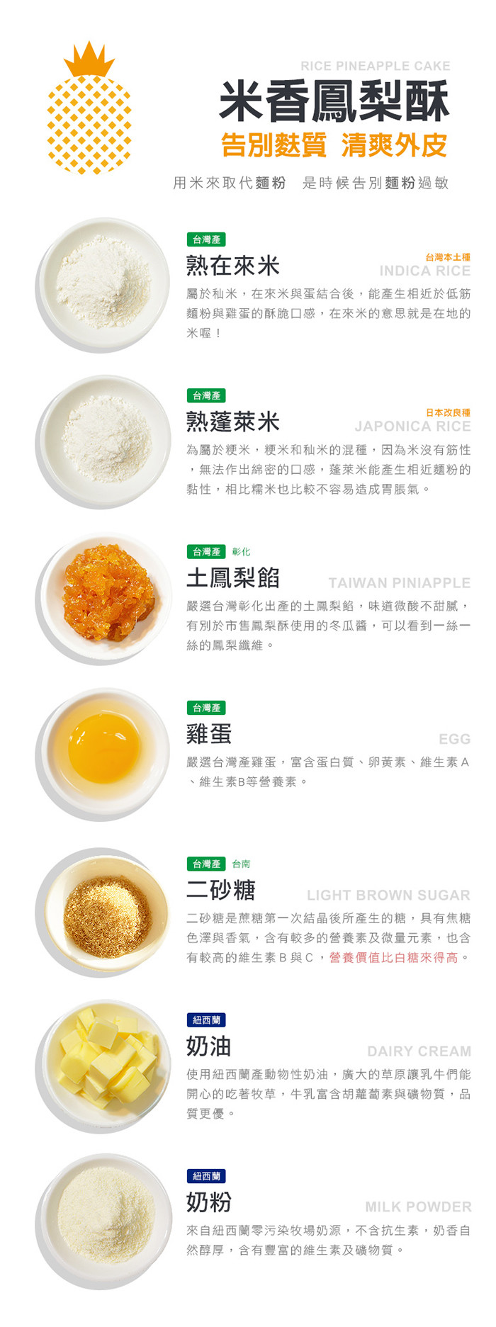 成分:紅豆、蛋、奶油、奶粉、二砂糖、土鳳梨餡、蓬萊米、在來米